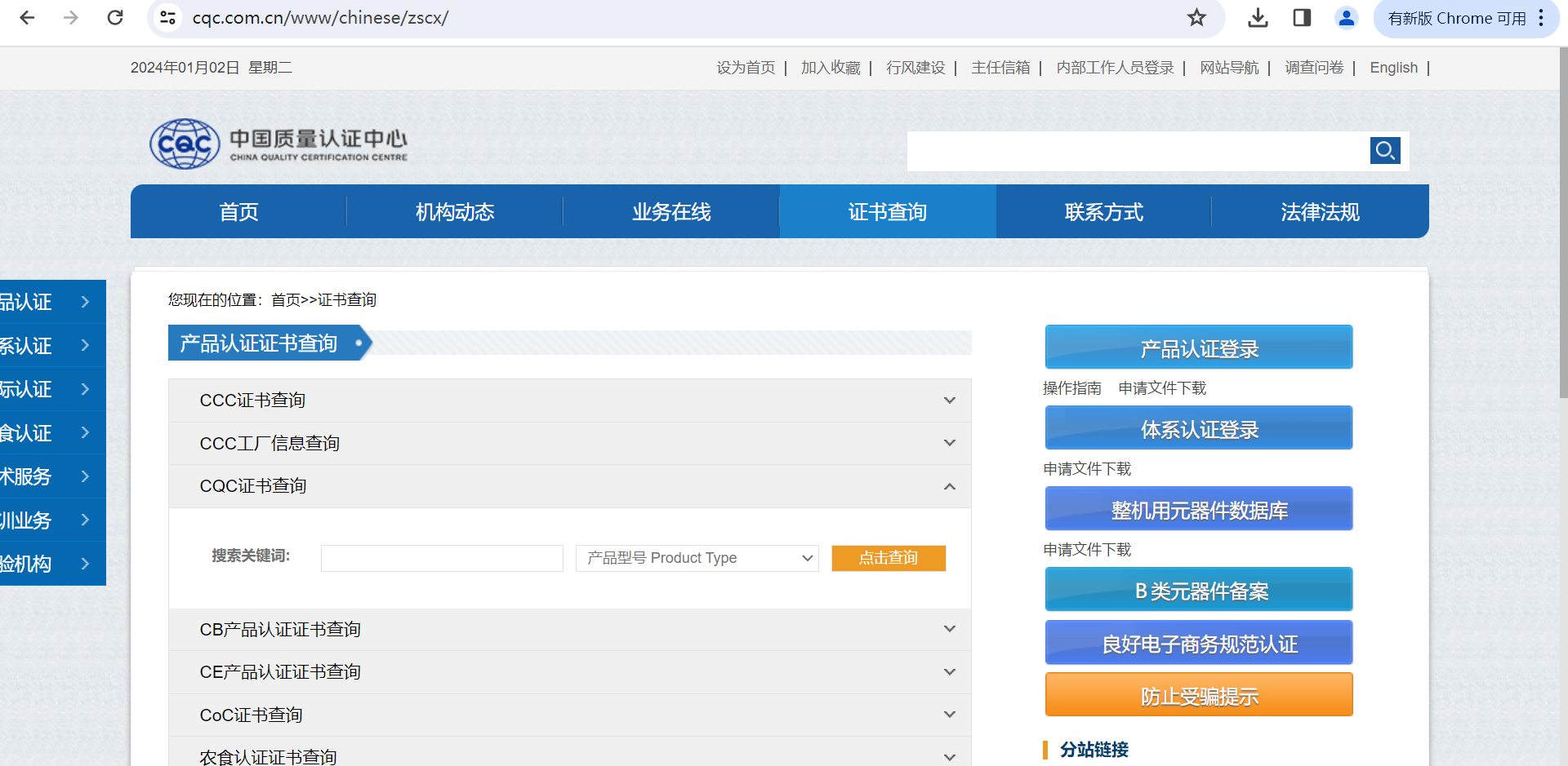 CQC认证证书查询路径