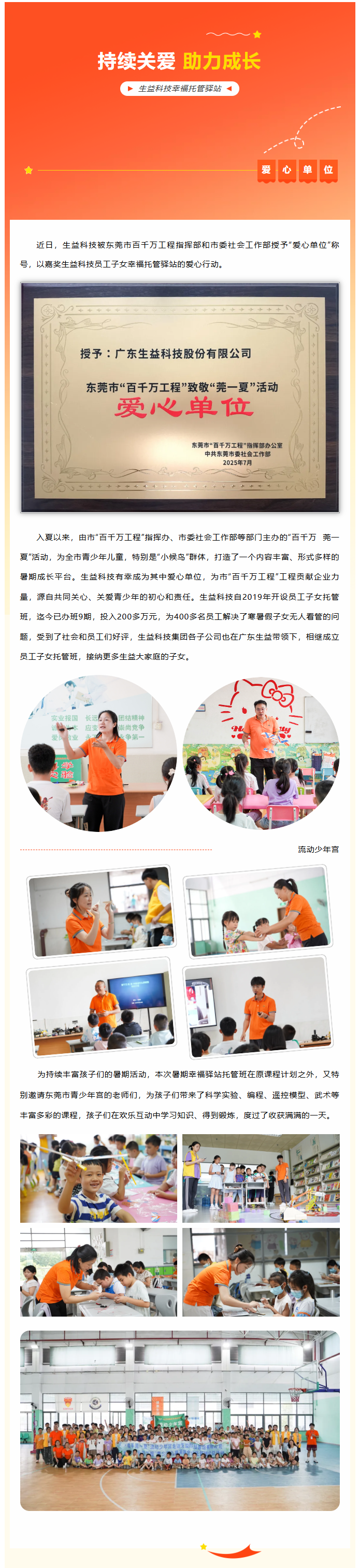 持续关爱 助力成长——广东必发官方网站荣获“爱心单位”称号