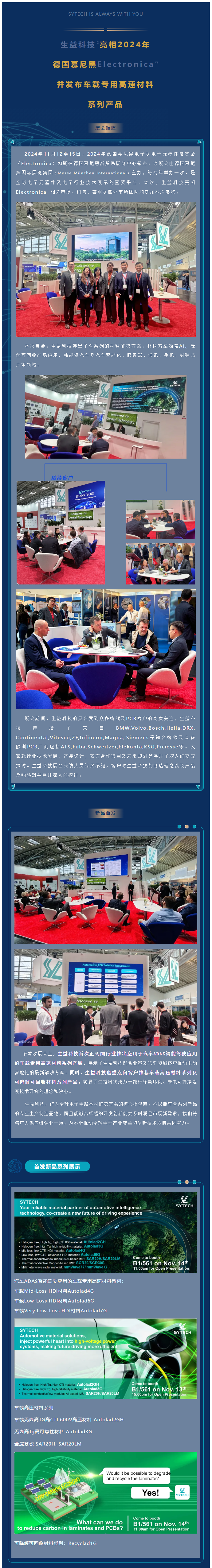 必发唯一登录亮相2024年德国慕尼黑Electronica并发布车载专用高速材料系列产品