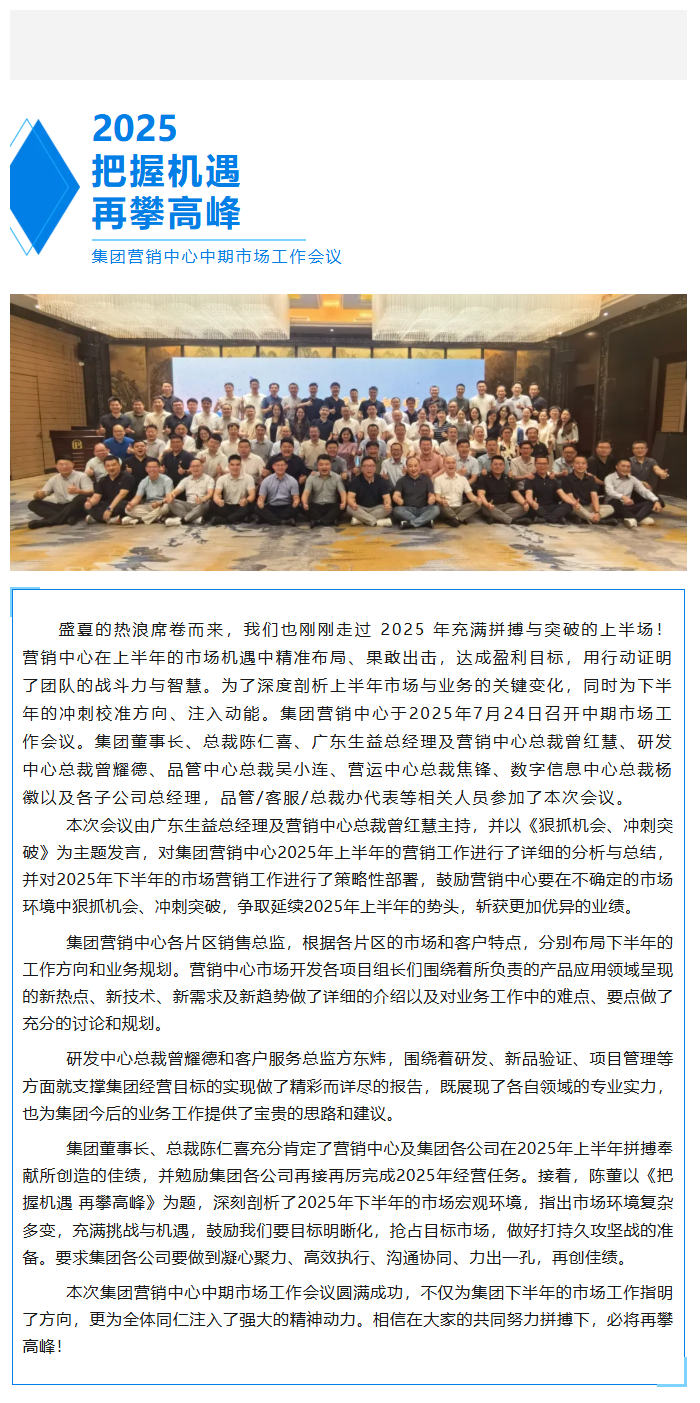把握机遇 再攀高峰——集团营销中心举行中期市场工作会议
