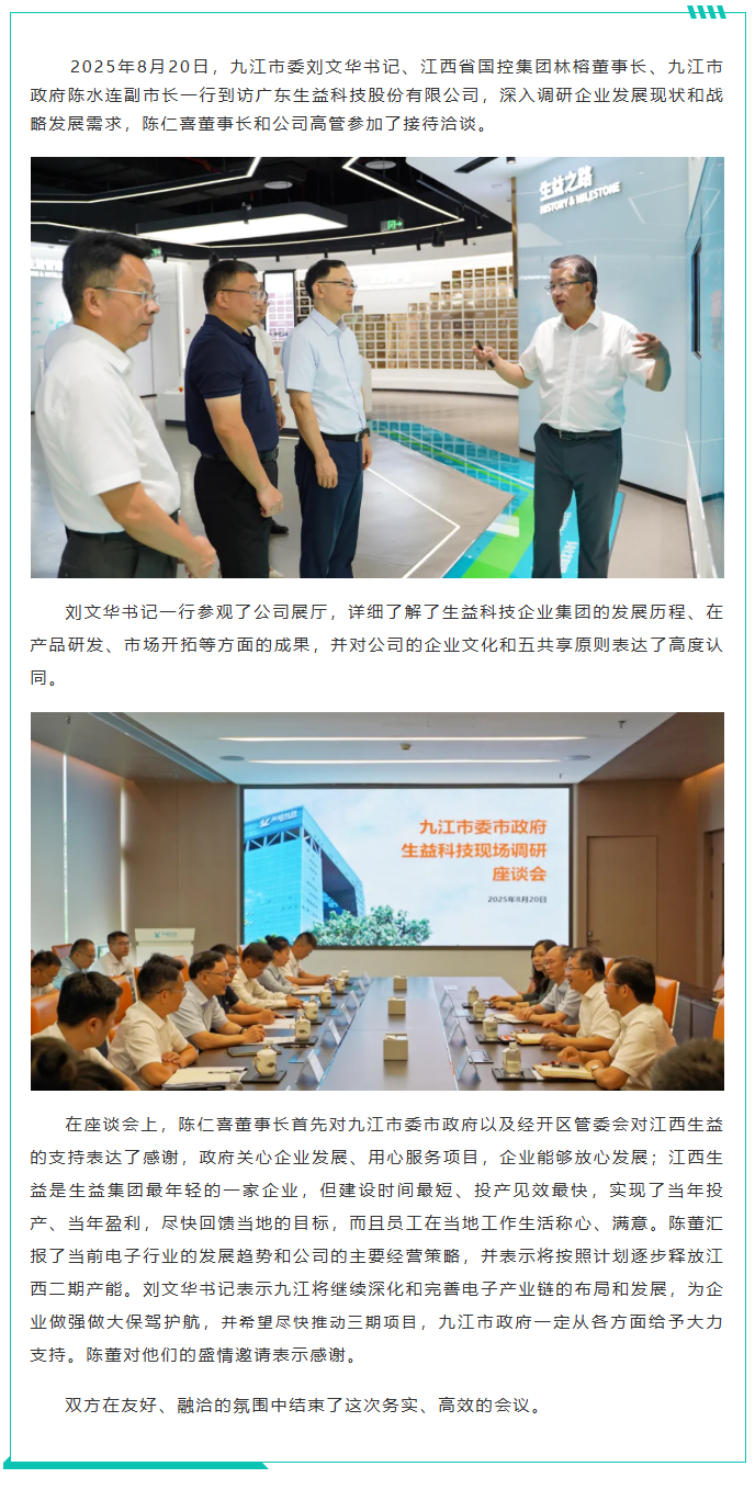 服务企业、关心企业——九江市委刘文华书记一行到访必发唯一登录