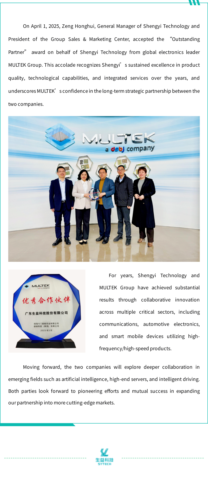 Shengyi Technology Honored as MULTEK’s "Outstanding Partner"